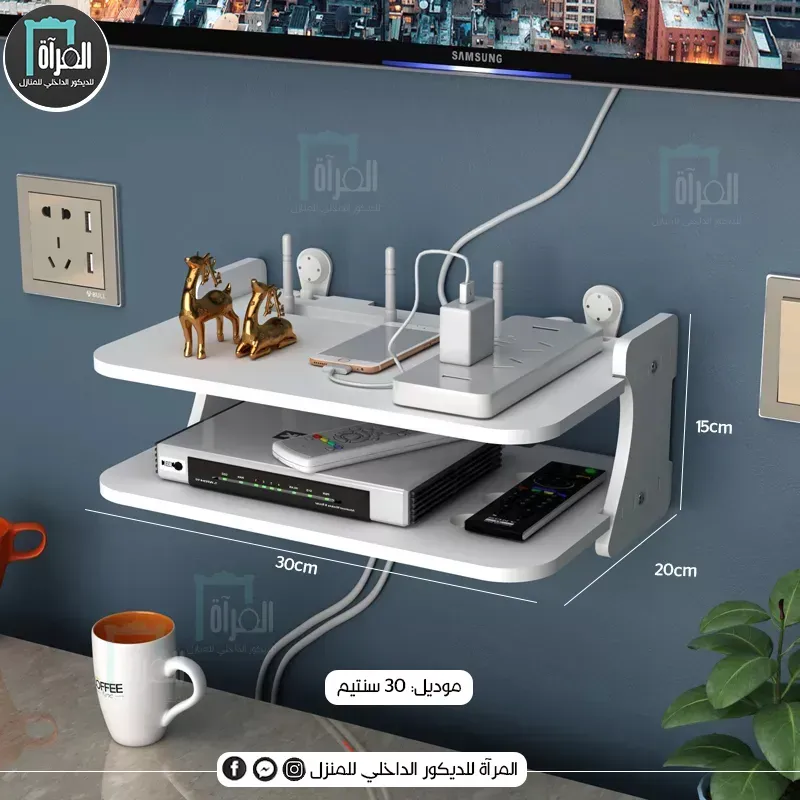 رف 30 سنتيم ذو تصميم رائع مقاوم للرطوبة ومتحمل لأوزان الأجهزة المرفقة بالتلفاز مصنوع من مادة الفوريكس 8 ملم.