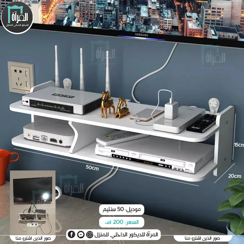 رف 50 سنتيم ذو تصميم رائع مقاوم للرطوبة ومتحمل لأوزان الأجهزة المرفقة بالتلفاز مصنوع من مادة الفوريكس 8 ملم